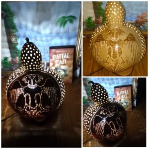 SELÇUKLU MOTİFLİ – ÇİFT BAŞLIKLI KARTAL İŞLEMELİ SU KABAĞI GECE LAMBASI